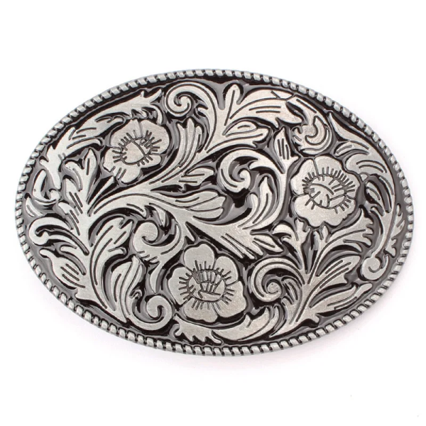 Home » AE Belt Buckle Ovaal Flower Zilver Grijs